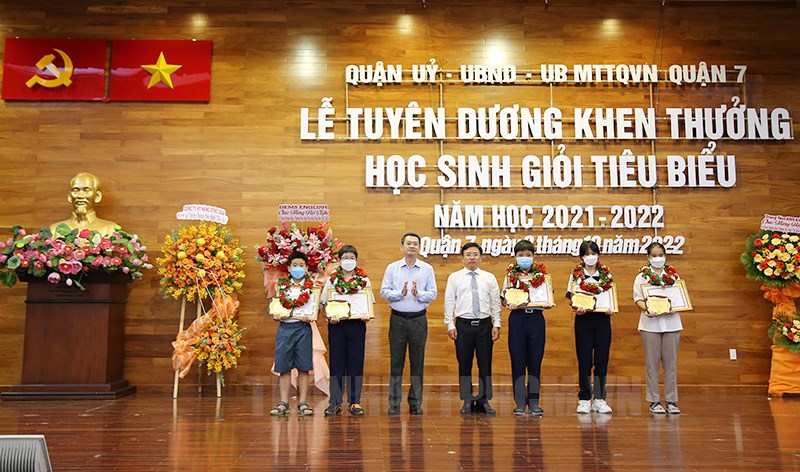 Tại buổi lễ, UBND Quận 7 đã tuyên dương khen thưởng 339 học sinh giỏi tiêu biểu của quận trong năm học 2021 - 2022 cùng 44 giáo viên bồi dưỡng học sinh có giải cao cấp Thành phố.