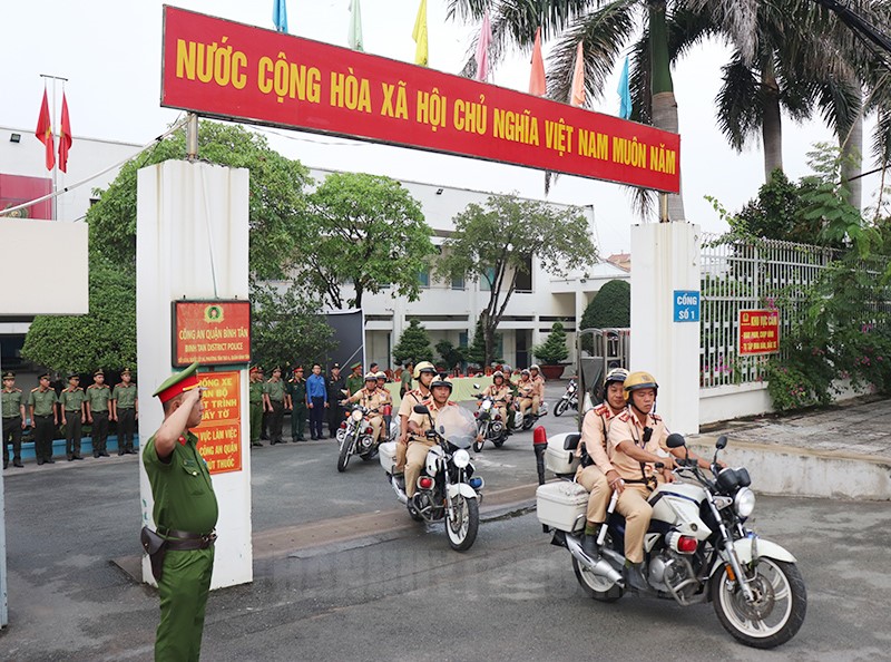 Quang cảnh buổi lễ ra quân.(Thanhuytphcm.vn) - Sáng 15/12, Công an quận Bình Tân tổ chức lễ ra quân cao điểm phòng ngừa, phát hiện, ngăn chặn, tấn công, trấn áp các loại tội phạm, bảo đảm an ninh trật tự Tết Nguyên đán Ất Tỵ 2025.