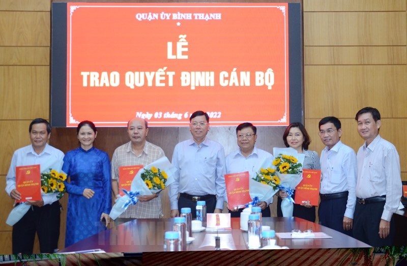 Tại buổi lễ, Ban Thường vụ Quận ủy trao quyết định điều động đồng chí Lê Minh Hải, Phó Trưởng Ban Dân vận Quận ủy tham gia Ban Chấp hành, Ban Thường vụ giữ chức Bí thư Đảng ủy Phường 22 nhiệm kỳ 2020 - 2025; trao các quyết định tiếp nhận và bổ nhiệm các đồng chí: Đỗ Văn Đức, Bí thư Đảng ủy Phường 22 đến nhận công tác tại Ban Dân vận Quận ủy giữ chức Phó Trưởng Ban Dân vận; Lương Thị Ngọc Thủy, Phó Bí thư Thường trực Đảng ủy Phường 3 đến nhận công tác tại Ủy ban Kiểm tra Quận ủy; Đào Trọng thực, Phó Bí thư Thường trực Đảng ủy Phường 12 đến nhận công tác tại Ủy ban MTTQ Việt Nam quận Bình Thạnh.