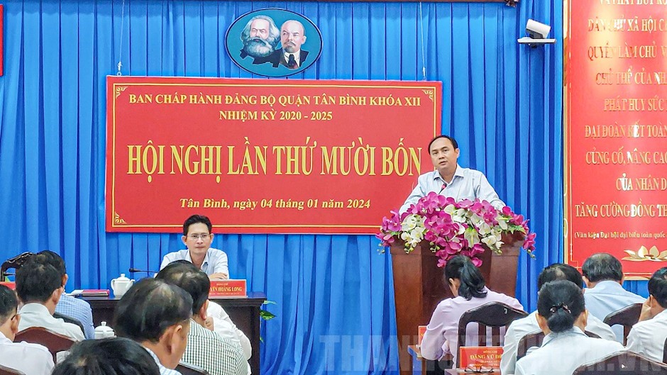 Phát biểu kết luận hội nghị, Bí thư Quận ủy Tân Bình Lê Hoàng Hà đề nghị các đảng ủy, chỉ ủy cơ sở, các ban, ngành, đoàn thể từ quận đến cở sở đẩy mạnh phong trào thi đua thực hiện chủ đề năm 2024 “Tăng cường xây dựng, chỉnh đốn Đảng và hệ thống chính trị trong sạch, vững mạnh; quyết tâm thực hiện hiệu quả chuyển đổi số và Nghị quyết số 98/2023/QH15 của Quốc hội” của Thành phố; tiếp tục triển khai thực hiện có hiệu quả Nghị quyết số 35-NQ/TW gắn với Kết luận số 21-KL/TW, Kết luận số 01-KL/TW… Tập trung triển khai xây dựng các chương trình, kế hoạch năm 2024, đặc biệt là tập trung thực hiện các chương trình, công trình trọng điểm; Tiếp tục thực hiện có hiệu quả Nghị quyết số 98/2023/QH15, Chỉ thị số 27-CT/TU, gắn với Nghị quyết số 31-NQ/TW, các văn bản có liên quan việc thực hiện các cơ chế, chính sách đặc thù phát triển TPHCM, việc sắp xếp đơn vị hành chính cấp huyện, cấp xã giai đoạn 2023-2025. Hoàn thành các nhiệm vụ, chỉ tiêu trong phát triển kinh tế, văn hóa – xã hội, công tác quốc phòng – an ninh, đảm bảo giữ vững ổn định an ninh chính trị, trật tự an toàn xã hội và nâng cao đời sống vật chất, tinh thần của Nhân dân.