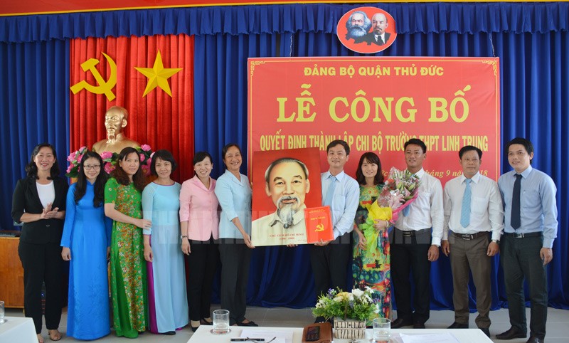 Đồng chí Phan Thị Kim Sinh, Phó Bí thư Quận ủy Thủ Đức trao quyết định thành lập chi bộ.(Thanhuytphcm.vn) – Sáng 21/9, Quận ủy quận Thủ Đức đã tổ chức lễ công bố quyết định thành lập Chi bộ Trường Phổ thông trung học Linh Trung. Đồng chí Phan Thị Kim Sinh, Phó Bí thư Quận ủy quận Thủ Đức đã tham dự lễ.
