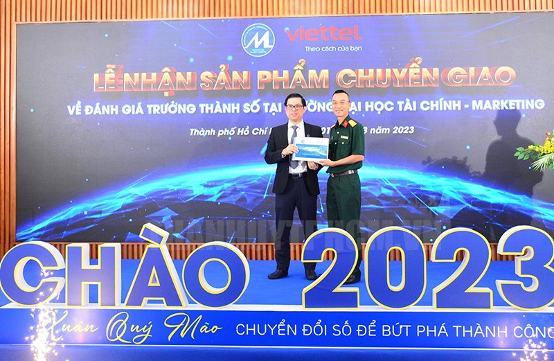 Phát biểu tại buổi lễ, Trung tá Đoàn Đại Phong, Phó Tổng Giám đốc Tổng công ty Giải pháp doanh nghiệp Viettel nhấn mạnh rằng, các trường đại học được xem là doanh nghiệp lớn, đặc thù, không nằm ngoài sự tác động của chuyển đổi số. Dựa trên phân tích kết quả khảo sát hiện trạng, mục tiêu và định hướng của Trường Đại học Tài chính - Marketing, Viettel chuyển giao tập tài liệu đánh giá trưởng thành số cho trường. Điều này đã thể hiện sự quyết tâm cao của tập thể nhà trường khi chỉ trong thời gian ngắn đã nỗ lực hoàn thành được đánh giá trưởng thành số. Với sự kết hợp giữa Viettel và Trường Đại học Tài chính - Marketing có thể đưa ra các giải pháp đột phá trong việc đào tạo và phát triển nhân lực chất lượng cao, giúp doanh nghiệp đáp ứng được các thách thức trong môi trường kinh doanh hiện nay.