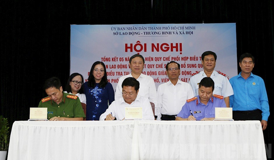 Cũng tại hội nghị, lãnh đạo Sở Lao động Thương binh và Xã hội Thành phố, Công an Thành phố, Viện Kiểm sát nhân dân Thành phố đã tiến hành ký kết Quy chế phối hợp điều tra tai nạn lao động chết người và tai nạn lao động khác có dấu hiệu tội phạm trên địa bàn TPHCM.
