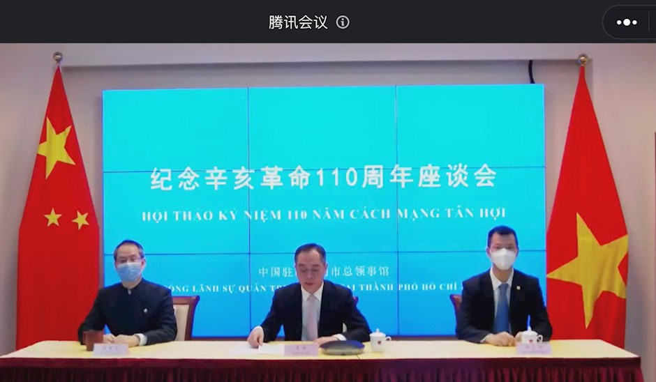 Các đại biểu tham dự buổi tọa đàm(Thanhuytphcm.vn) – Sáng 10/10, Tổng Lãnh sự quán Trung Quốc tại TPHCM, Hội hữu nghị Việt –Trung TPHCM tổ chức tọa đàm trực tuyến nhân kỷ niệm 110 năm Cách mạng Tân Hợi (1911-2021). Tham dự hội nghị có Phó Giám đốc Sở Ngoại vụ TPHCM Phạm Trần Thanh Thảo, Tổng Lãnh sự Trung Quốc tại TPHCM Ngô Tuấn, cùng các nhà khoa học.