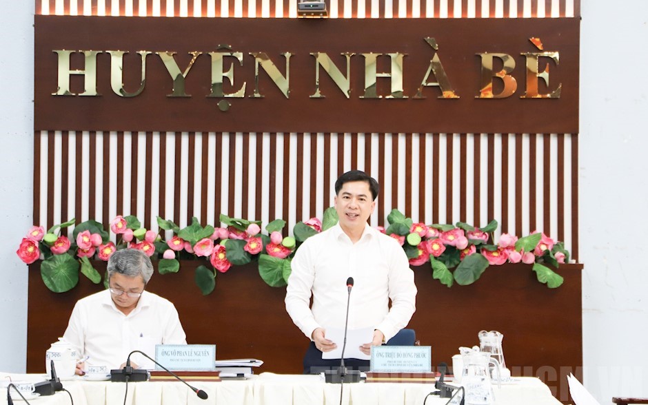 Đồng chí Triệu Đỗ Hồng Phước, Phó Bí thư huyện ủy, Chủ tịch UBND huyện Nhà Bè phát biểu chỉ đạo tại cuộc họp(Thanhuytphcm.vn) - Chiều 7/8, đồng chí Triệu Đỗ Hồng Phước, Phó Bí thư huyện ủy, Chủ tịch UBND huyện Nhà Bè đã chủ trì cuộc họp với thành viên Ban Chỉ đạo các Chương trình mục tiêu quốc gia trên địa bàn huyện Nhà Bè giai đoạn 2021 - 2025.