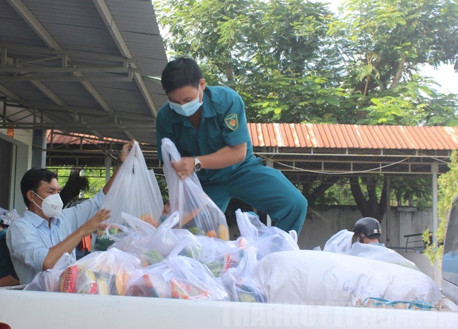 Lực lượng vũ trang huyện Nhà Bè hỗ trợ chuyển quà đến các hộ dân(Thanhuytphcm.vn) - Ngày 11/7, UBND huyện Nhà Bè đã phối hợp với Bộ Tư lệnh TPHCM tổ chức trao quà chia sẻ khó khăn giúp đỡ nhân dân huyện Nhà Bè phòng, chống dịch Covid-19.