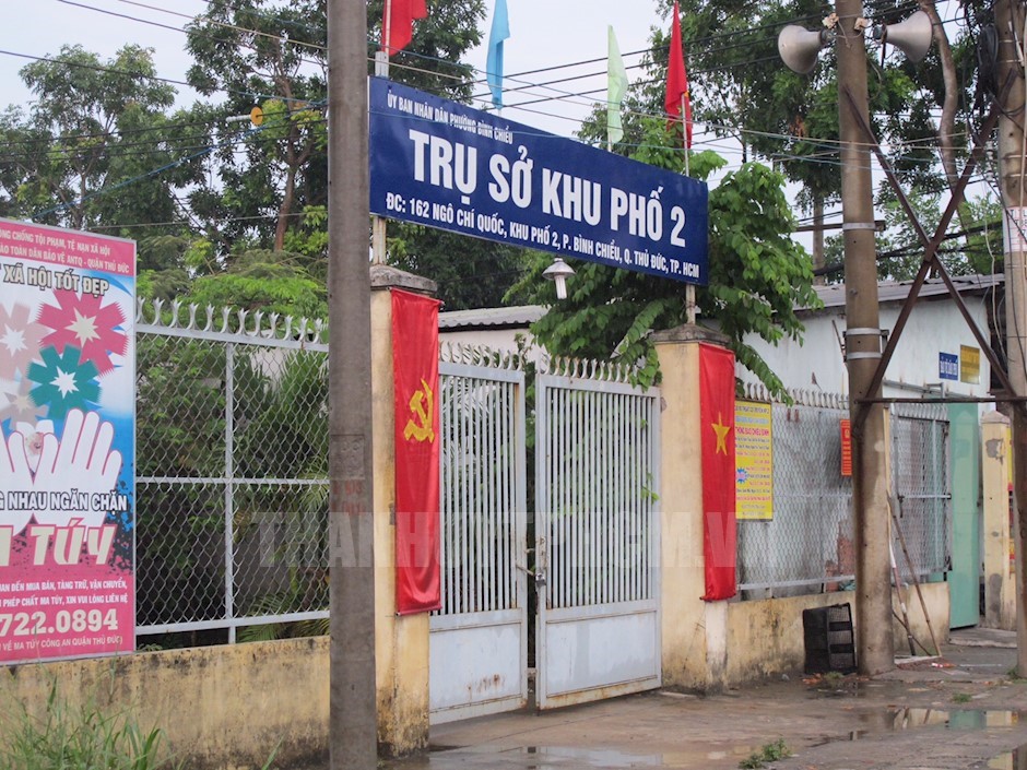 UBND TPHCM khuyến khích sáp nhập ấp, khu phố, tổ nhân dân, tổ dân phố. (Trong ảnh: Trụ sở Khu phố 2, phường Bình Chiểu, quận Thủ Đức)(Thanhuytphcm.vn) - UBND TPHCM vừa ban hành quy chế tổ chức và hoạt động của ấp, khu phố, tổ nhân dân, tổ dân phố trên địa bàn TP.