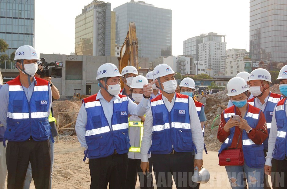 Tại đây, Chủ tịch UBND TPHCM Nguyễn Thành Phong ghi nhận các đơn vị thi công, nhà thầu đã nỗ lực đẩy nhanh tiến độ hoàn thiện dự án và hoàn trả mặt bằng phía trên nhà ga Ba Son. Chủ tịch UBND TPHCM Nguyễn Thành Phong cũng đã trao đổi nhanh với các sở, ngành về việc tháo gỡ những vướng mắc, khó khăn để đảm bảo hoàn thành và vận hành đúng tiến độ.