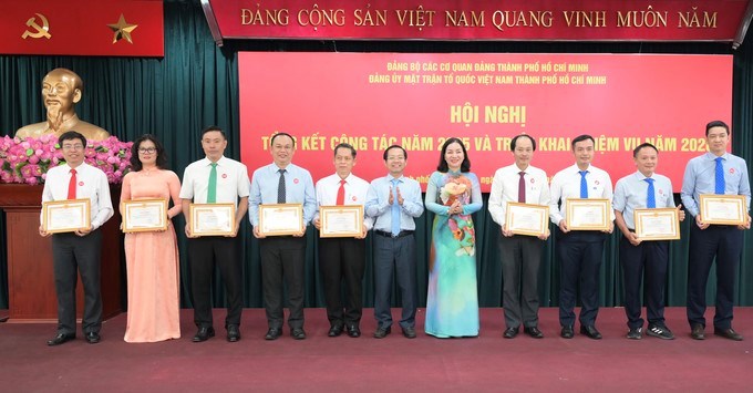 Dịp này, 6 Đảng bộ bộ phận, chi bộ trực thuộc Đảng bộ MTTQ Việt Nam TPHCM, 25 chi bộ trực thuộc Đảng bộ bộ phận và 280 đảng viên đạt thành tích "Hoàn thành xuất sắc nhiệm vụ" được nhận giấy khen.