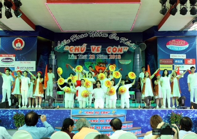 Tiết mục biểu diễn của nhóm ca trường THPT Gia Định tại vòng chung kết(Thanhuytphcm.vn) - Ngày 25/8, tại Công viên nước Đầm Sen đã diễn ra vòng chung kết xếp hạng và trao giải Liên hoan nhóm ca khúc Chú ve con 2018 lần thứ 23 do Sở Giáo dục và Đào tạo TPHCM cùng Công viên nước Đầm Sen tổ chức.