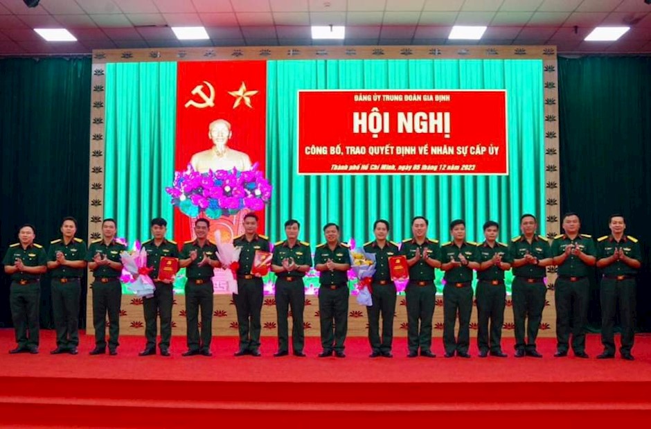 Chỉ huy Trung đoàn chúc mừng các đồng chí nhận quyết định nhân sự cấp ủy Trung đoàn Gia Định nhiệm kỳ 2020 - 2025(Thanhuytphcm.vn) - Ngày 5/12, Đảng ủy Trung đoàn Gia Định tổ chức Hội nghị trao Quyết định Ủy viên Ban Chấp hành Đảng bộ Trung đoàn nhiệm kỳ 2020-2025 của Ban Thường vụ Đảng ủy Quân sự Thành phố.