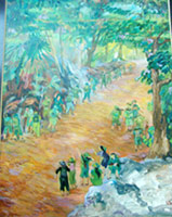 Tác phẩm tranh sơn dầu “Hẹn gặp Sài Gòn” của Lê Quang Luân (sáng tác về đề tài Mậu Thân) trưng bày tại triển lãm.
