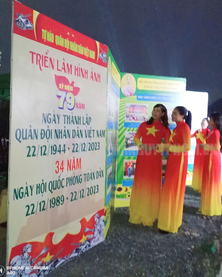 Các đại biểu thực hiện nghi thức khai mạc triển lãm ảnh Tự hào Quân đội Việt NamĐây là dịp để cán bộ, chiến sĩ, đoàn viên, hội viên, học sinh và Nhân dân trên địa bàn có cơ hội học hỏi, trao đổi, giao lưu, trải nghiệm niềm đam mê ca hát, xây dựng phong trào văn hóa văn nghệ sôi nổi ở cơ sở. Qua đó, nhằm đẩy mạnh các hoạt động thông tin tuyên truyền, nâng cao nhận thức của xã hội về ý nghĩa Ngày truyền thống Quân đội Nhân dân Việt Nam, Ngày Hội Quốc phòng toàn dân; nhất là xây dựng tình đoàn kết quân - dân sâu sắc, góp phần xây dựng nền quốc phòng toàn dân gắn với xây dựng thế trận an ninh nhân dân ngày càng vững chắc.