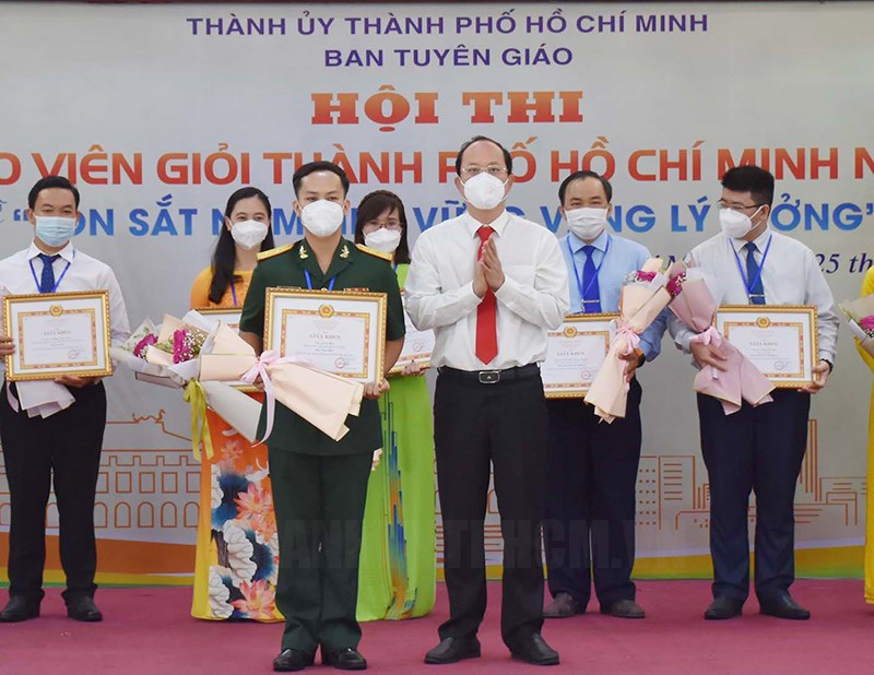 Phó Bí thư Thành ủy TPHCM Nguyễn Hồ Hải trao giải Nhất Hội thi Báo cáo viên giỏi TPHCM năm 2021 cho Trung úy Lê Hảo.(Thanhuytphcm.vn) – Vượt qua 52 thí sinh tham dự Hội thi Báo cáo viên giỏi TPHCM năm 2021 với chủ đề “Son sắt niềm tin - Vững vàng lý tưởng” do Ban Tuyên giáo Thành ủy TPHCM tổ chức, thí sinh Lê Hảo (Đảng bộ Bộ Tư lệnh TPHCM) đã xuất sắc giành giải Nhất. Đây cũng là thí sinh trẻ tuổi nhất tham dự Hội thi năm nay.