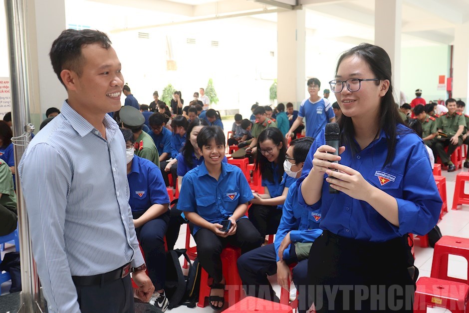 Các bạn đoàn viên, thanh niên hào hứng cùng chia sẻ các kiến thức bản thân với báo cáo viên(Thanhuytphcm.vn) - Ngày 14/7, tại Trường THCS Lương Thế Vinh (Cơ sở 2), Ban Thường vụ Quận đoàn Quận 3 tổ chức Ngày hội Tuổi trẻ Quận 3 với chuyển đổi số lần 2 năm 2023.