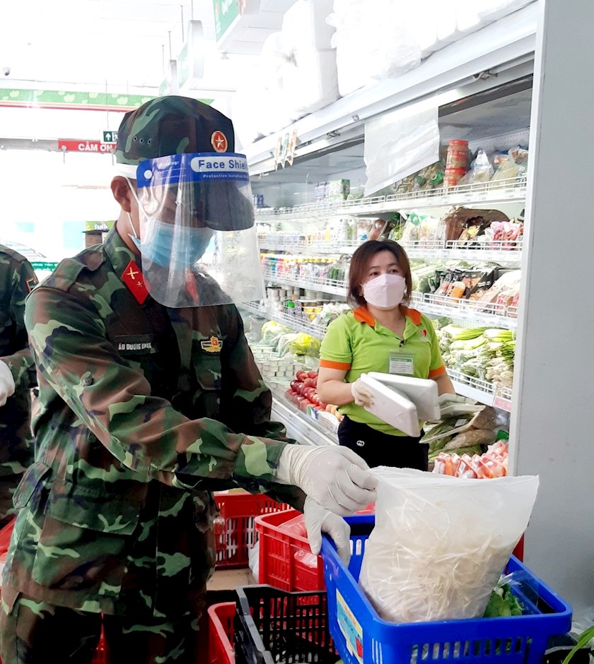 Bộ đội “đi chợ giúp dân”. Ảnh: Nguyệt Thu(Thanhuytphcm.vn) - Hai ngày gần đây, báo chí và mạng xã hội thông tin nhiều về việc một số phường ở quận Tân Phú xảy ra hiện tượng lực lượng cơ sở bị “bom hàng” khi nhận “đi chợ giúp dân”. Đây là việc rất đáng tiếc và cũng rất đáng trách trong bối cảnh TPHCM đang triệt để thực hiện giãn cách xã hội và chính quyền các địa phương triển khai rất tích cực mô hình “đi chợ giúp dân” để đáp ứng nhu cầu về hàng hóa thiết yếu của người dân.